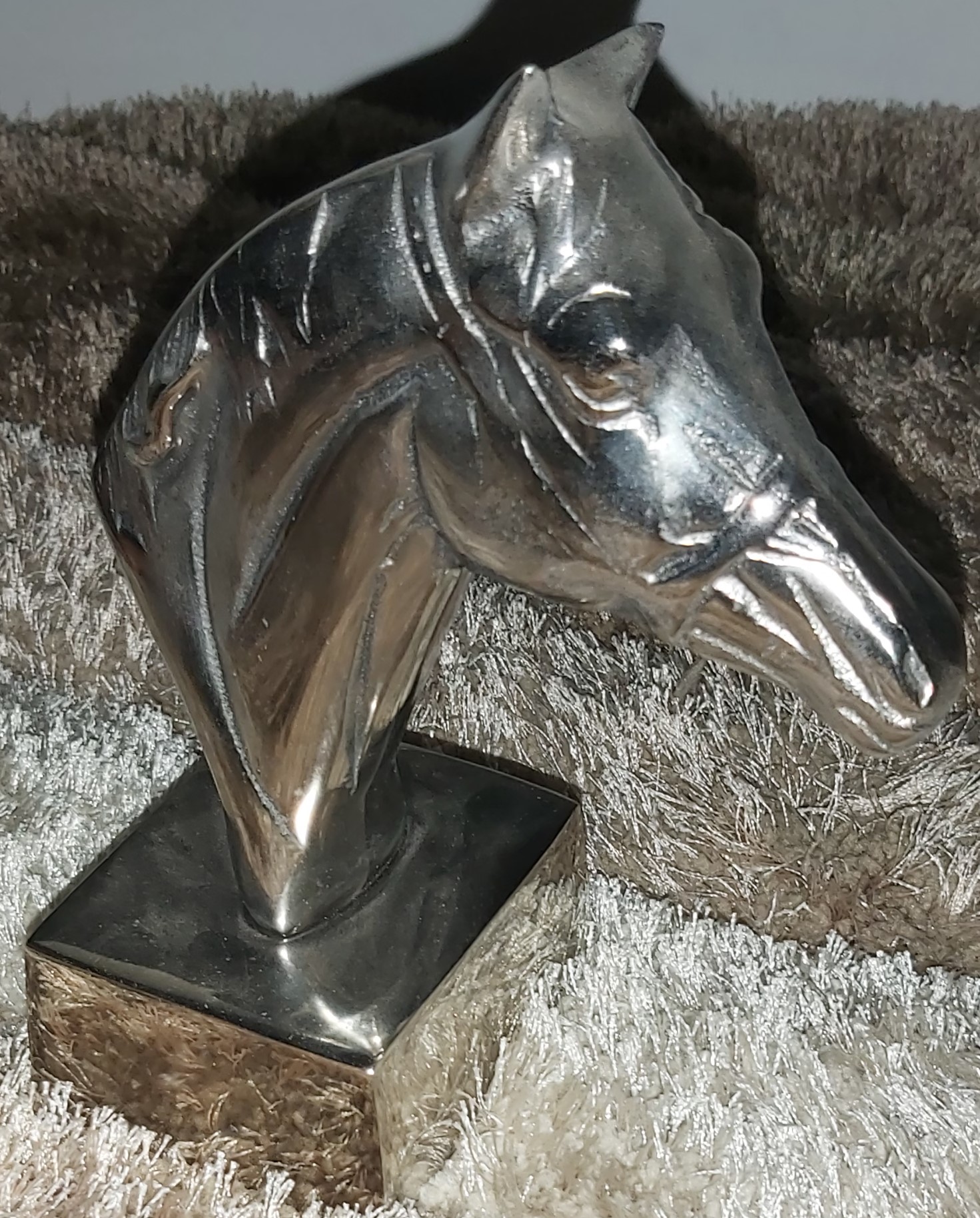 Adorno decorativo, caballo color plateado 10 cm de largo 16 cm de alto.